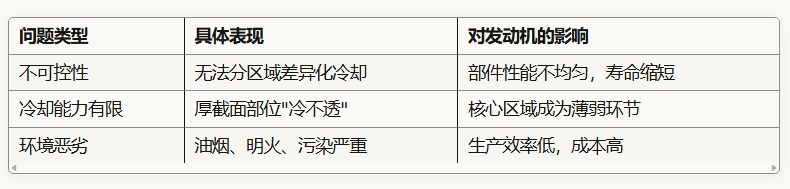 通过计算机仿真建模,精确控制每个喷嘴的位置和水气比例及速度,实现了对一个零件不同区域的“定制化”冷却:
