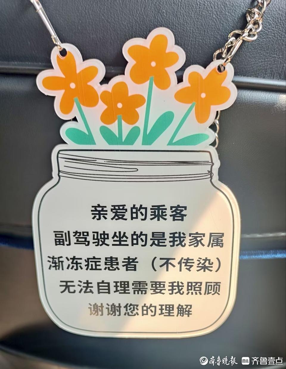 卡片上几行字清晰而郑重:“亲爱的乘客:副驾驶坐的是我家属华生证券,渐冻症患者(不传染),无法自理需要我照顾,谢谢您的理解。”李海宽心中原本小小的抱怨,此刻悄然消散,取而代之的是沉甸甸的惭愧和由衷的敬佩。他默默拿出手机拍下照片,随后将这张见证女司机和丈夫同舟共济的卡片上传到了社交平台。