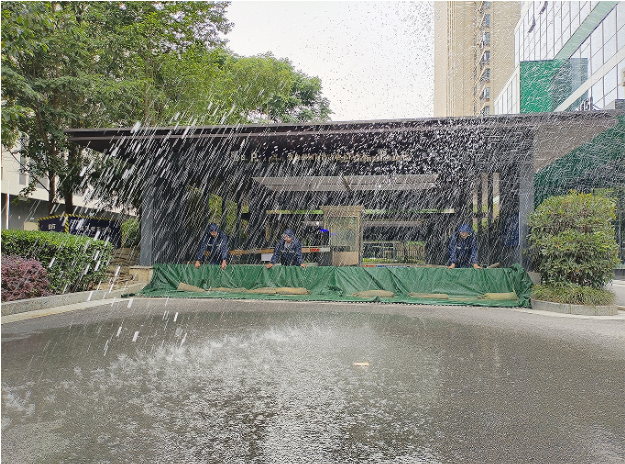 针对夏季汛期特点,6月13日,北湖国际城物业联合和成社区组织开展了防汛应急实战演练。本次演练模拟暴雨红色预警发布,应急小组立即启动《防汛应急预案》,通过业主群、广播同步发布预警信息,提醒业主关闭门窗、停放车辆至高处。抢险组携带沙袋、铁锹、抽水泵等物资,快速赶赴地下车库入口、低洼路段等易积水区域,堆砌防汛沙袋、疏通排水管道,对堵塞的雨水箅子进行清掏,同步启动抽水泵强排积水。检查组逐户排查独居老人、低层住户,协助转移贵重物品,引导至小区临时避险点,全程分工明确、行动迅速,仅用时30分钟完成“险情”控制,实现“演练即实战”的应急能力检验。