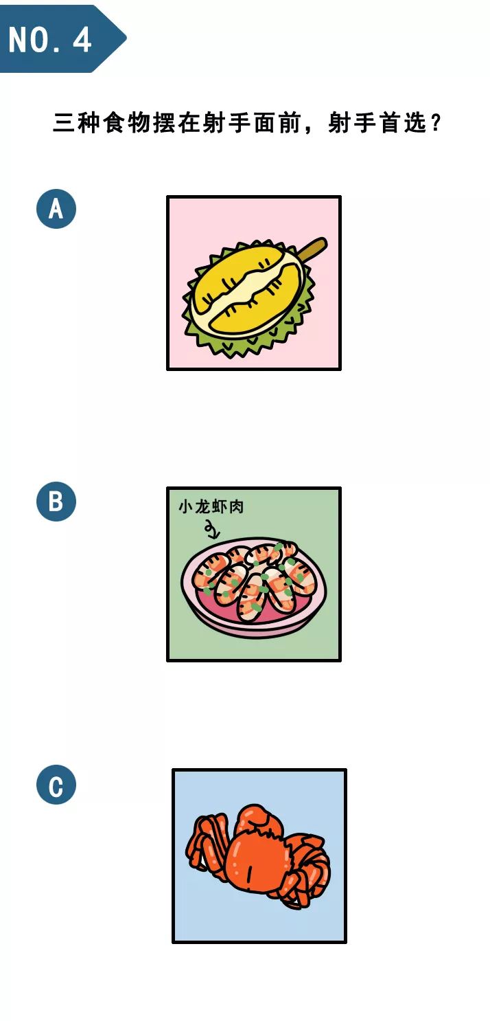 答案:B。射手是一个晚期懒癌患者,天生怕麻烦。三种好吃的食物摆在面前,首选剥好皮了的。
