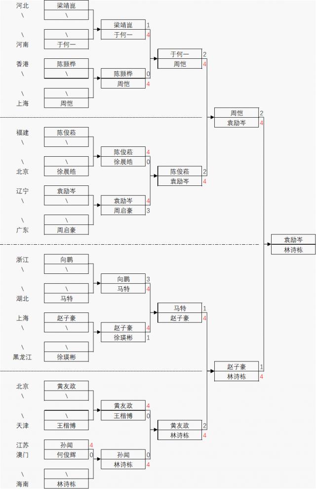 第三局林诗栋重振旗鼓,很快便 10-2 领先扩大优势,随后虽然错失 2 个局点但并无大碍,最终以 11-4 再次取胜压制袁励岑。