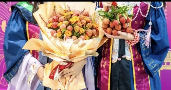 华南农业大学(以下简称华农)是国内荔枝科研的“排头兵”。6月15日,华农举行2025年毕业典礼暨学位授予仪式,有毕业生拎着“荔枝包”、手捧荔枝花束上台合影。据介绍,荔枝是从学校果园新鲜采摘。“这是只有我们华农才有的品种中博策略,也是老师给我们的特殊礼物。”有毕业生骄傲地展示了华农荔枝新品种“仙桃荔”。这些荔枝,也祝福毕业生顺顺“荔荔”。